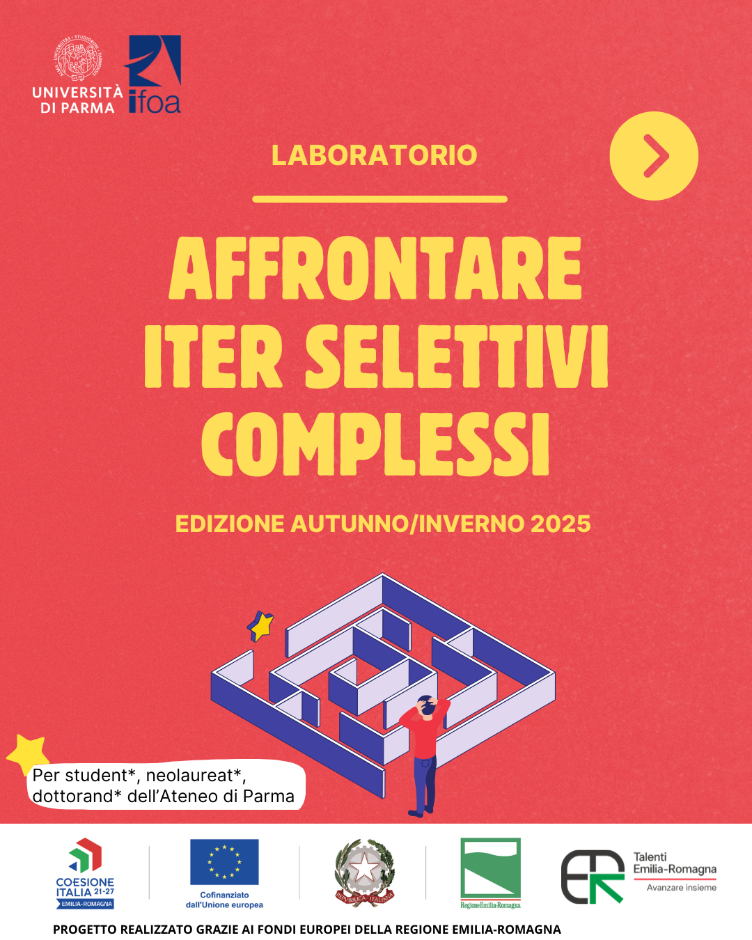 Parma, 15 ottobre 2025 – Ripartono dal 29 ottobre i laboratori Affrontare iter selettivi complessi realizzati in collaborazione con l’ente di formazione IFOA, per accompagnare studentesse, studenti, laureati/e, laureande/i, dottorande/i, dottori e dottoresse di ricerca dei 10 Dipartimenti dell’Ateneo nell’esplorazione delle dinamiche legate ai processi di selezione.