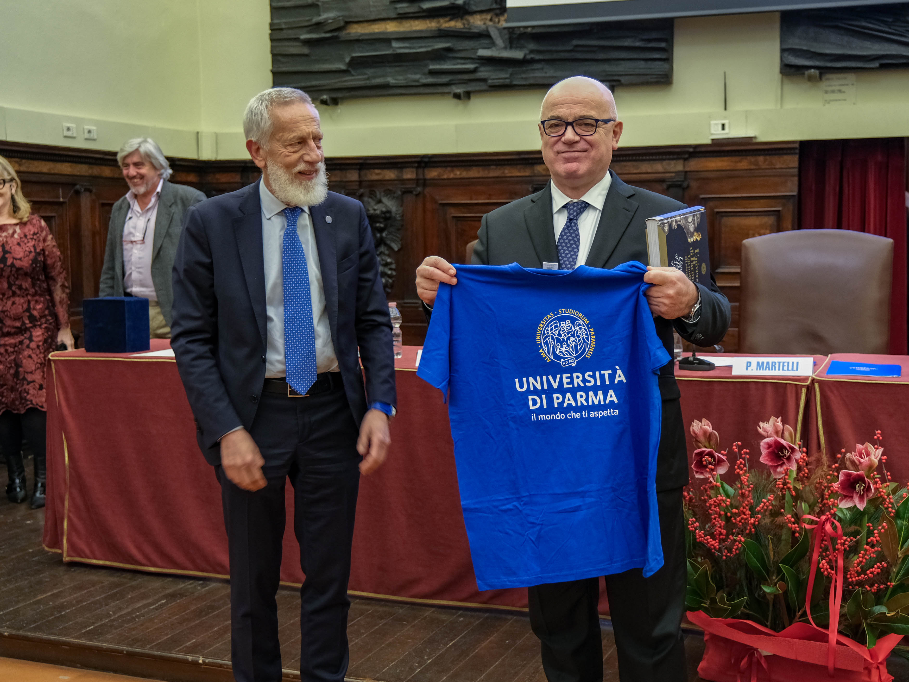 A seguire gli interventi di Lucia Scaffardi, Presidente dell’Associazione Alumni e Amici dell’Università di Parma, di Paolo Russo, docente di Musicologia e storia della musica all'Università di Parma, e di Luigi Allegri, Professore onorario, già docente di Storia del teatro e dello spettacolo all'Università di Parma.