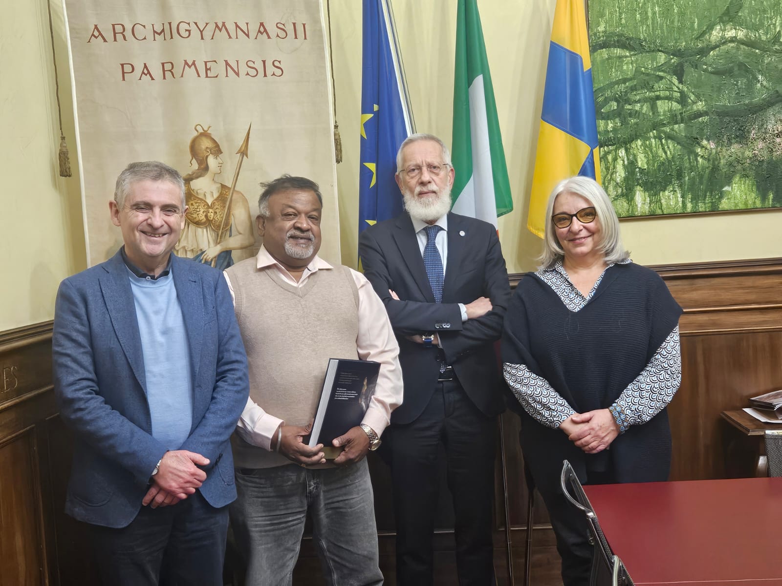 Parma, 22 gennaio 2026 – Si rafforza e si intensifica la collaborazione fra l’Università di Parma e l’Africa, con possibilità di ulteriori ampliamenti. Nei giorni scorsi il Rettore Paolo Martelli ha ricevuto nella Sede dell’Ateneo Ananth Thomson, Presidente del Consiglio universitario della DMI-St. Eugene University – Lusaka (Zambia) e della DMI-St. Joseph University – Dar es Salaam (Tanzania). Con loro la Delegata del Rettore alla Cooperazione internazionale Nadia Monacelli e il consigliere del Centro Universitario per la Cooperazione Internazionale - CUCI Marco Mezzadri. Il Dr. Thomson ha incontrato anche colleghi e colleghe di Ingegneria, Fisica, Medicina e Infermieristica nella sede del CUCI.